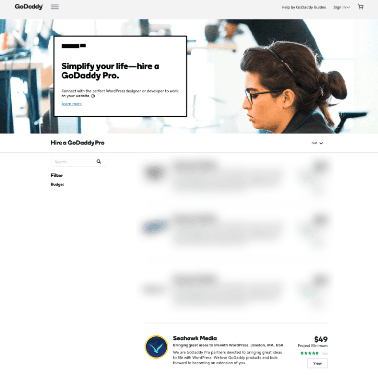 When you hire a GoDaddy Pro, you know you are hiring a trusted agency or freelancer. You don’t have to worry about their quality or level of professionalism because every GoDaddy Pro has been vetted for credibility. Not only is this league of GoDaddy Pros trustworthy, they also have extensive knowledge and training in the GoDaddy ecosystem, giving you a better, high-quality website and overall design experience.