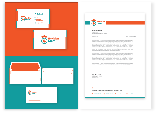 Visiting Card, Envelope & Letter Head redesign for Envision Learn