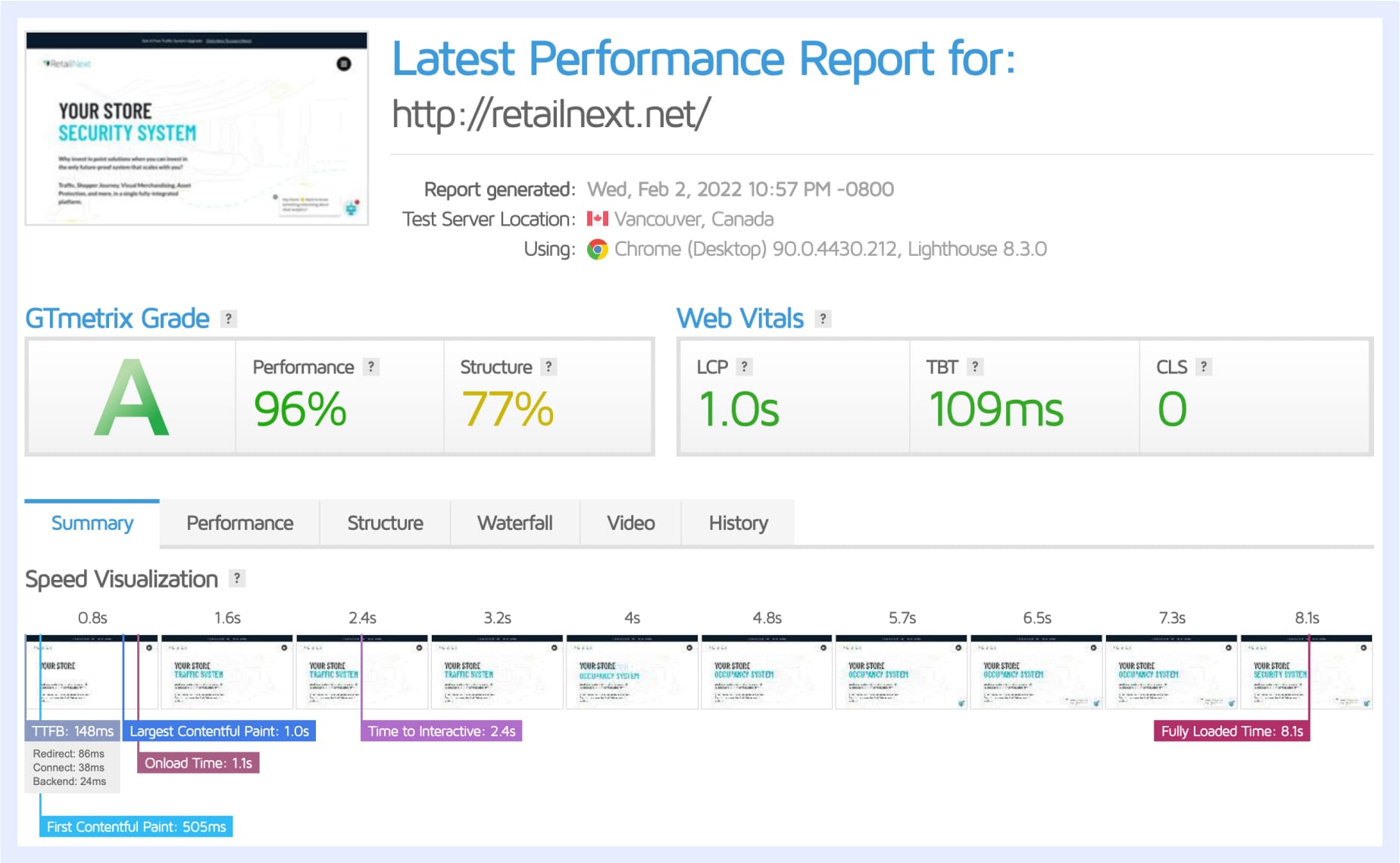 Post-optimization Website Performance Report