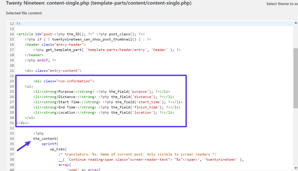The first method to showcase your custom field info involves adding Advanced Custom Fields’ PHP functions directly to your child theme’s template files. While a bit advanced, it ensures a consistent display of custom fields.