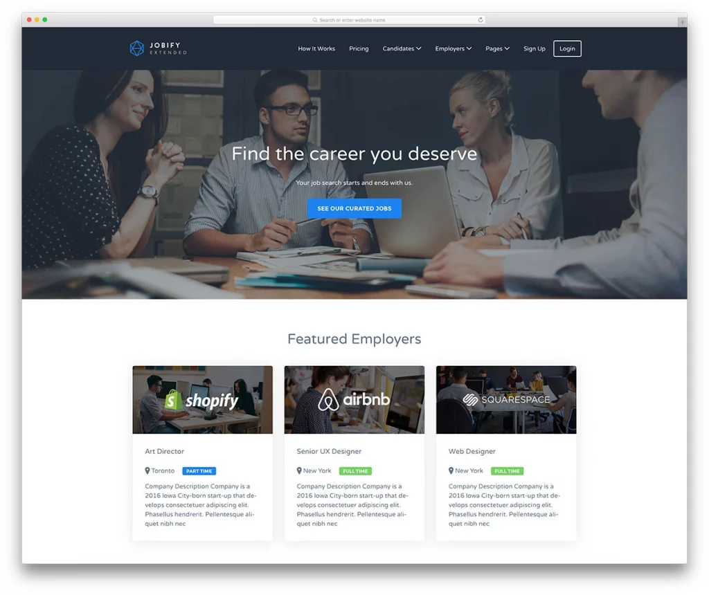 One of the best selling Job board theme on Themeforest is Jobify. It comes with a bunch of innovative features such as live searching and filtering, setup paywall for job listings, submissions management & more. It supports a number of famous form plugins like Gravity Forms & Ninjaforms which makes it easies to setup to lead capturing. It has Full Localization Support, eye caching Typography, Customizer support, shortcodes etc. Check it out!