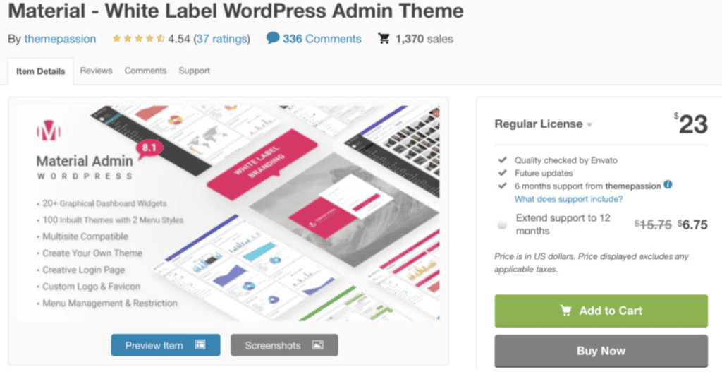 Material – White Label WordPress Admin Theme