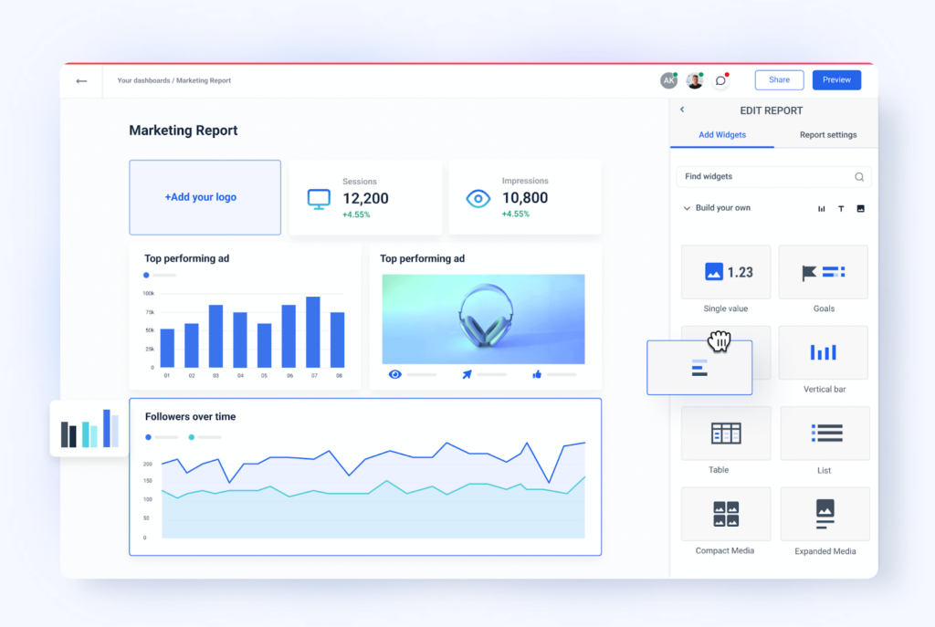 AgencyAnalytics è una piattaforma di reporting con etichetta bianca progettata specificamente per il monitoraggio e la segnalazione delle campagne di marketing dei clienti. Questa piattaforma si distingue per la sua capacità di fornire alle aziende informazioni preziose sui loro sforzi di content marketing , aiutarli a misurare il loro successo e a prendere decisioni basate sui dati.