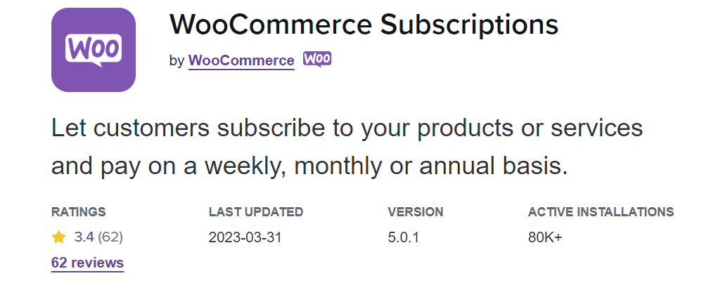 WooCommerce Subscriptions is a plugin that allows businesses to offer subscription-based products or services on their WooCommerce-powered e-commerce site. With this plugin, customers can sign up for recurring payments, either on a set schedule or based on usage.